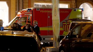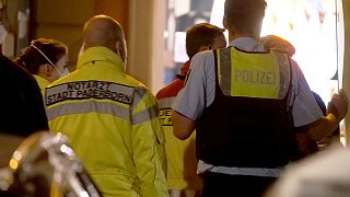 Einsatzkräfte umringen den 83-Jährigen, der Minuten zuvor aus em Tresorraum befreit wurde.