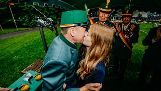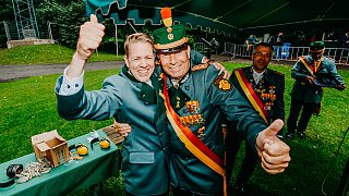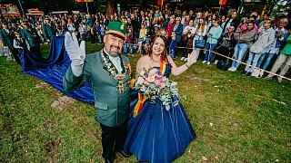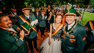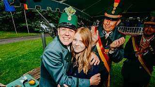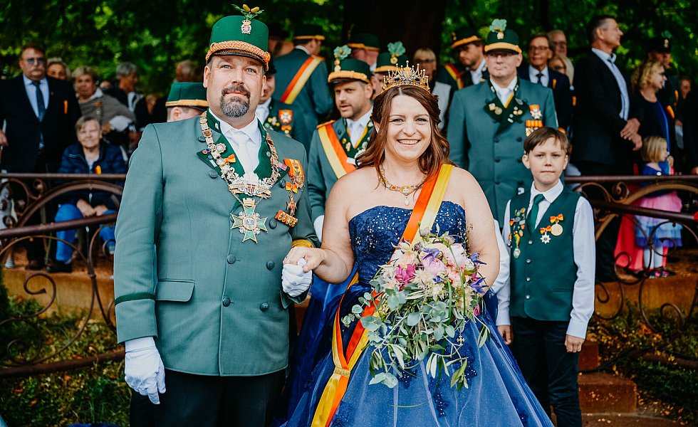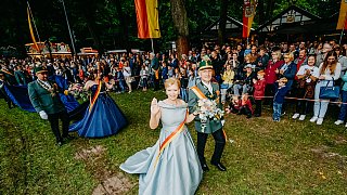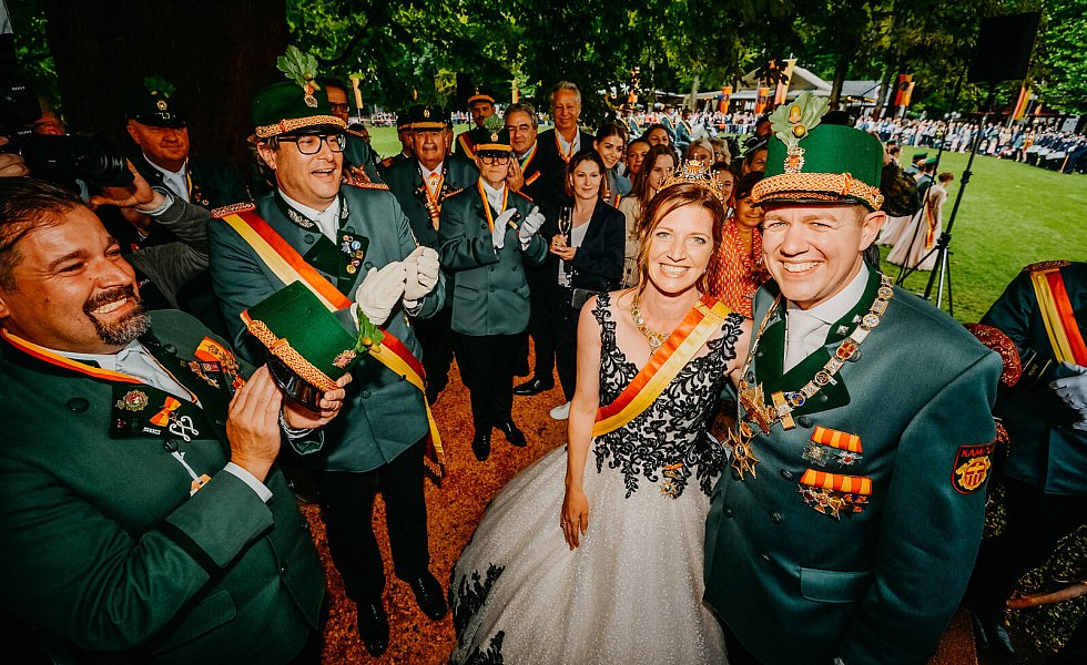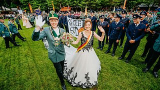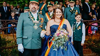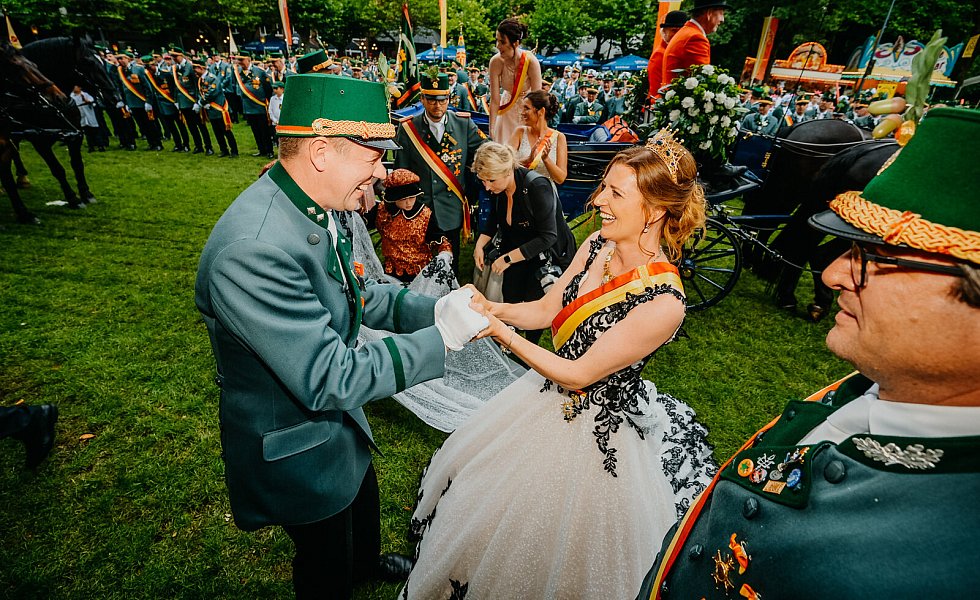 "Schön, dass du es geworden bist": Stefanie Nötges freut sich über "ihren" König Dennis Happe, der selbst seine große Freude nicht verbergen kann.