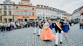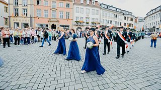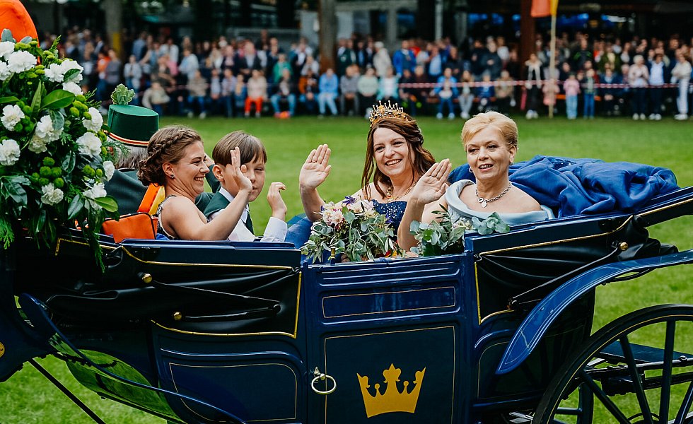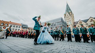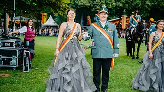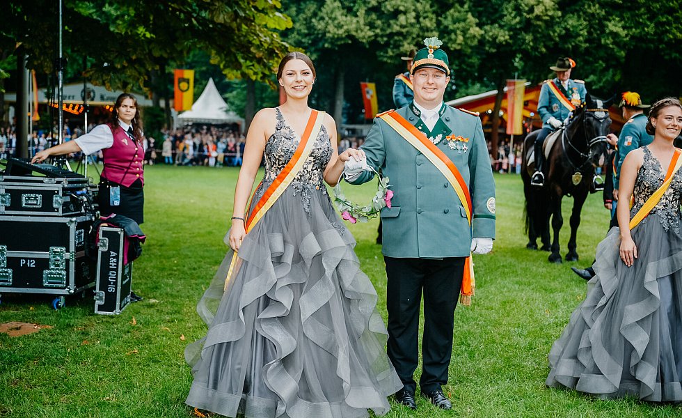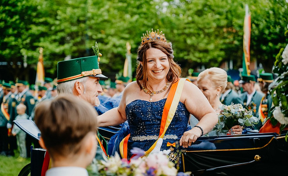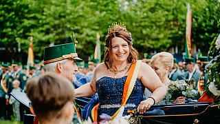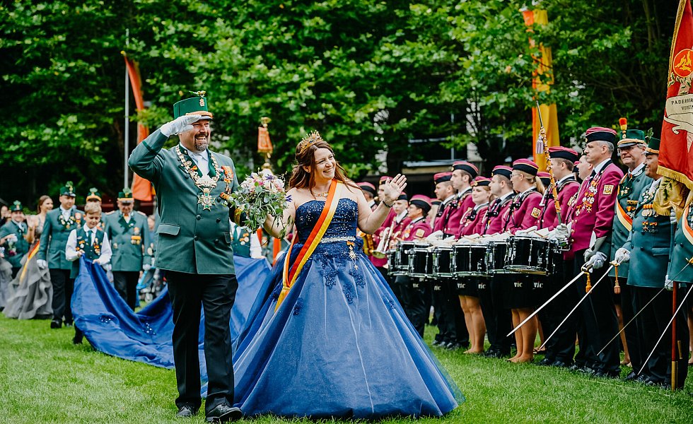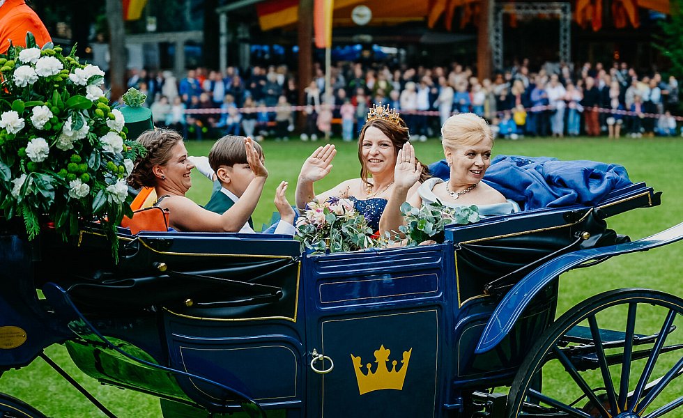 Auffahrt der neuen Königin mit den Damen des Hofstaats und Inthronisierungszeremoniell beim Schützenfest des PBSV 2022 am Montagabend in Paderborn.
