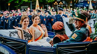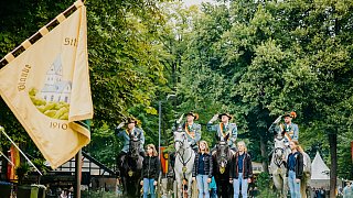 Auffahrt der Paderborner Königin mit den Damen des Hofstaats und Parade zu Ehren des Königspaares beim Schützenfest des PBSV 2022 am Sonntag in Paderborn