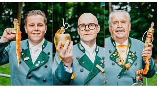 Die drei Prinzen des PBSV: Unteroffizier Maximilian Koch (Krone), Vize-Feldwebel Torsten Vogt (Apfel) und Sergeant Hans-Jürgen Kallenberg (Zepter).