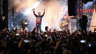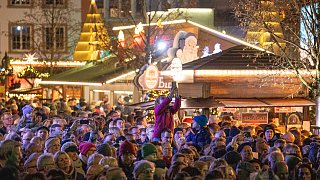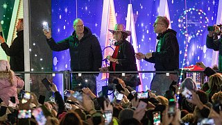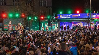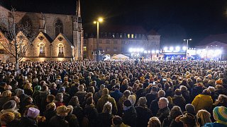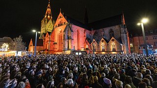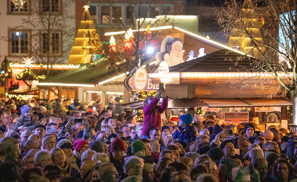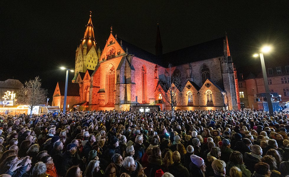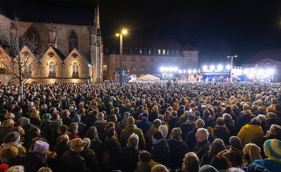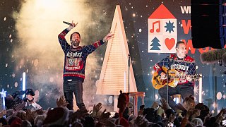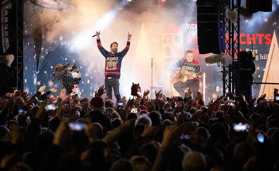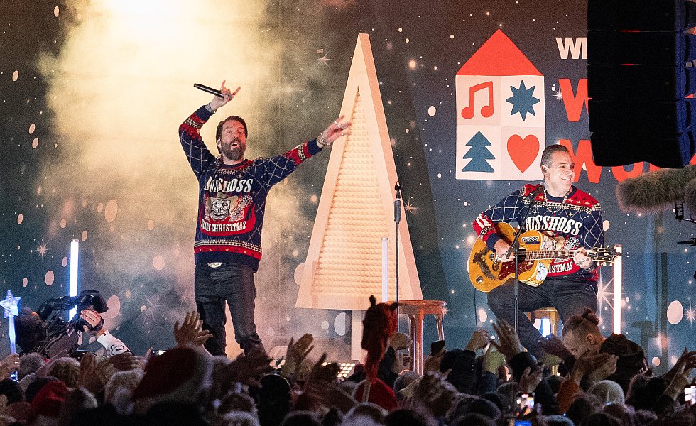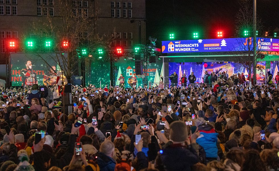 Vor Tausenden Menschen gibt The Boss Hoss beim WDR2-Weihnachtswunder in Paderborn ein Kurzkonzert.