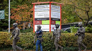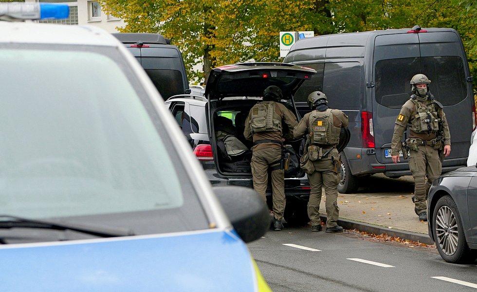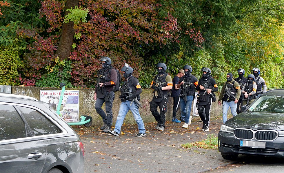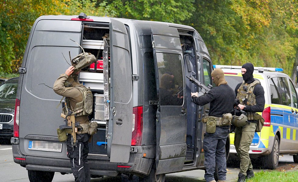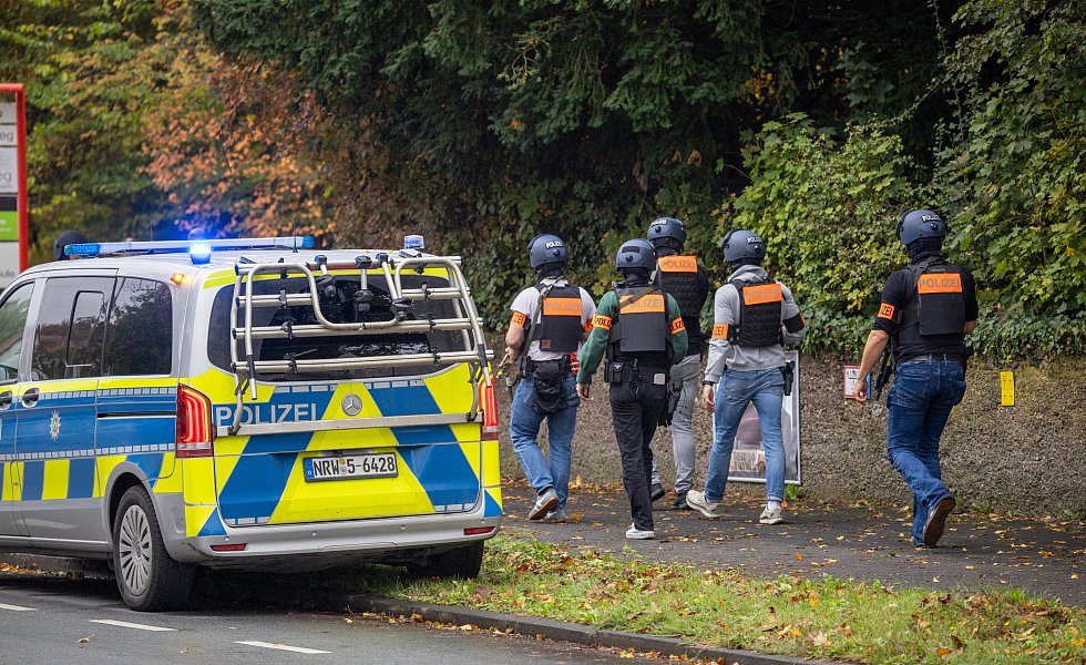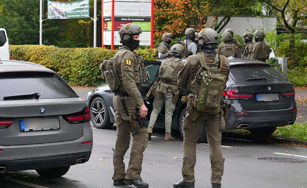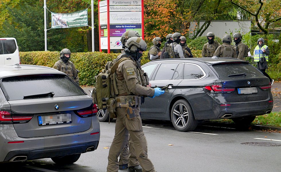 Schwer bewaffnete Sondereinsatzkräfte aus verschiedenen Teilen NRWs rücken nach Paderborn an.