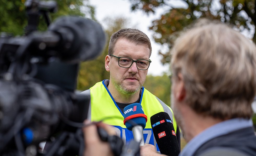 Einsatzabsprache im Eingangsbereich zum Westfalen Kolleg