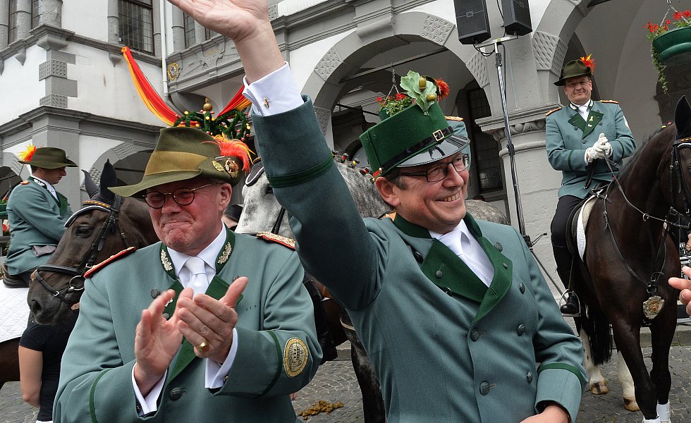 Bei seinem ersten Schützenfest als Bürgermeister im Jahr 2014 wird Michael Dreier sofort passend eingekleidet.