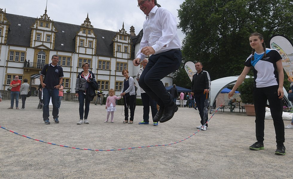 Michael Dreier als eleganter Seilchenspringer 2017 beim Tag des Sports im Neuhäuser Schlosspark.