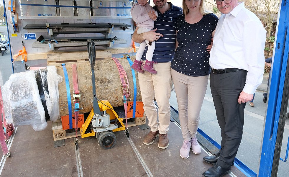 Mit Katja, Stefan und Töchterchen Mira Werth nach der Entschärfung der 1,8-Tonnen-Luftmine im Jahr 2018.