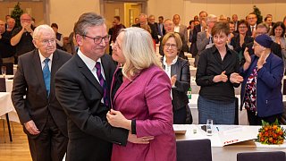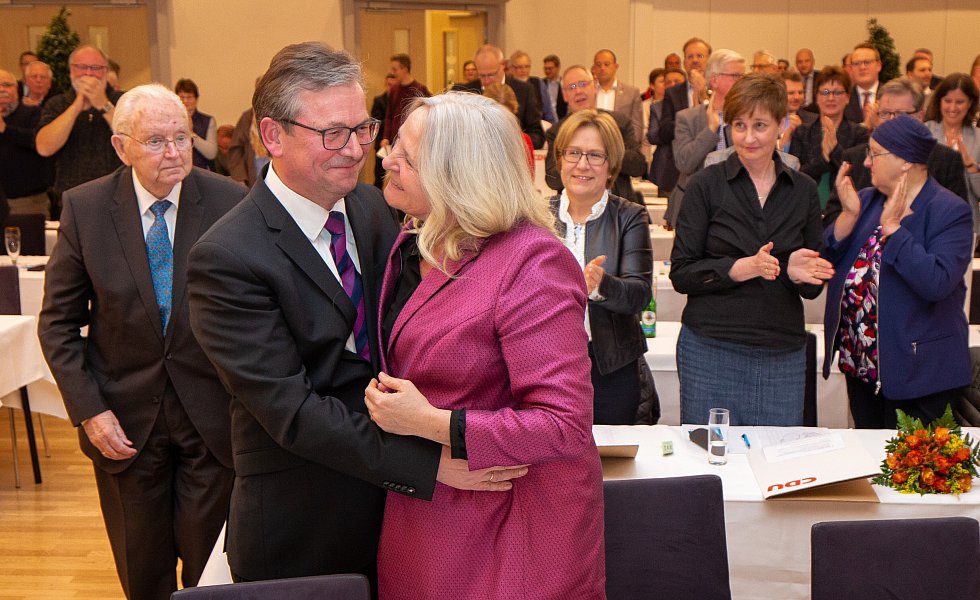 Beate Dreier ist die Erste, die ihrem Mann nach der Wahl zum Bürgermeisterkandidaten der CDU für die Kommunalwahl 2020 gratuliert.