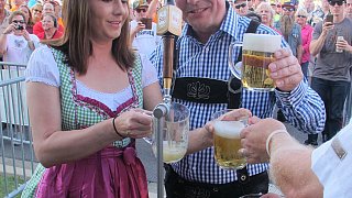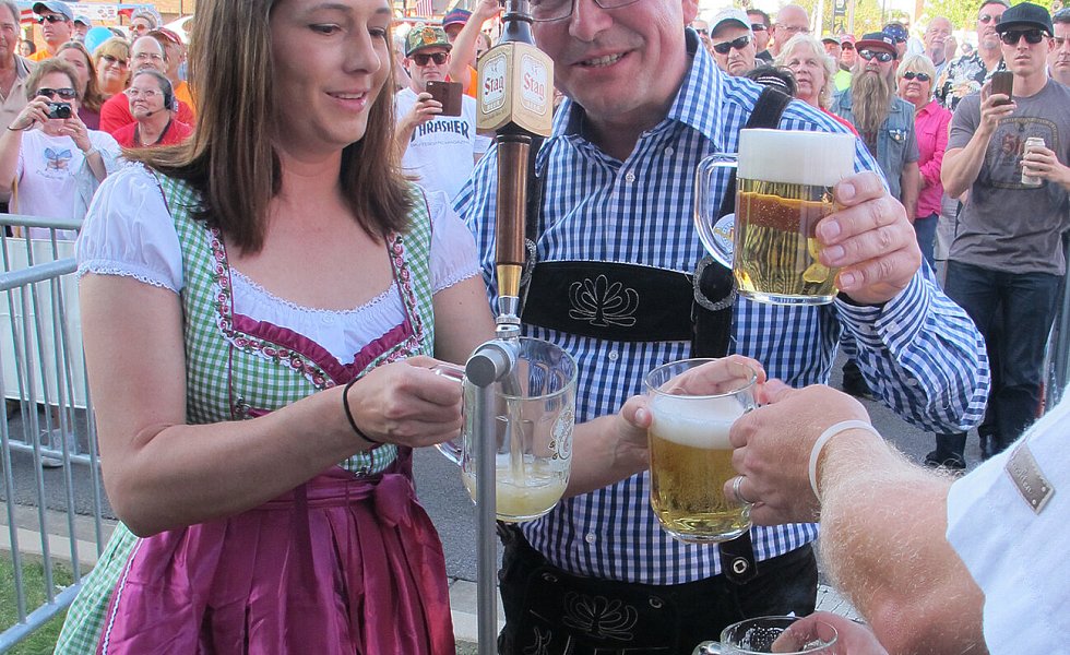 In der US-Partnerstadt Belleville bei der Oktoberfest-Eröffnung 2014 in Lederhose mit Anne Fritz-Benton.