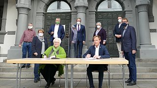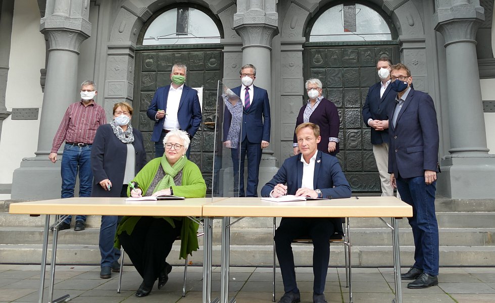 In der Pandemie 2020 mit gebührendem Abstand bei der Unterzeichnung des Koalitionsvertrags zwischen den Ratsfraktionen der CDU und der Bündnisgrünen.