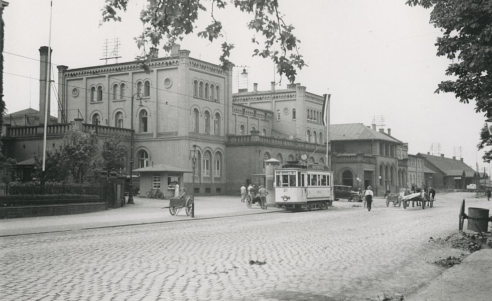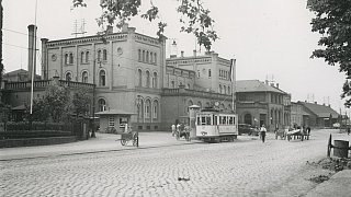 Der Hauptbahnhof mit seinem Vorplatz auf einem Foto aus der Zeit vor 1945.