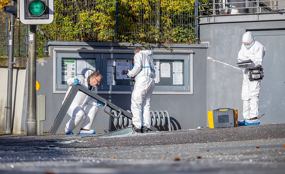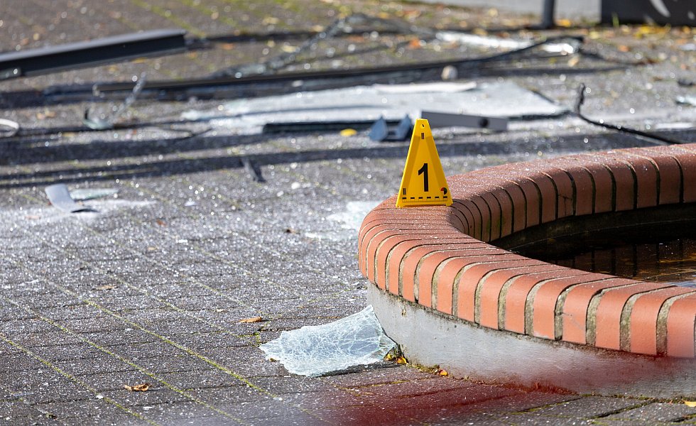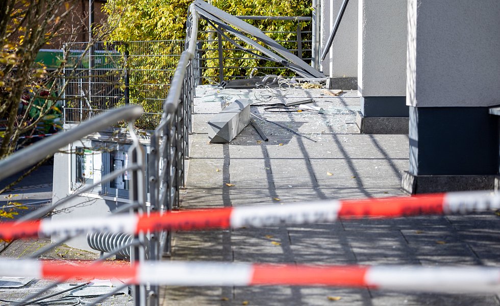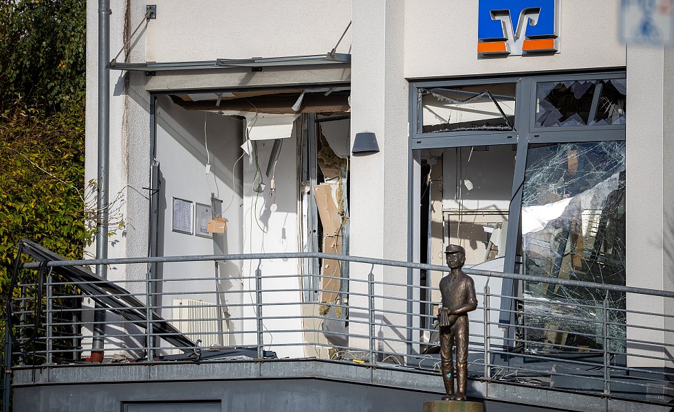 Die Sprengung eines Geldautomaten hinterlässt in der Verbundvolksbank-Filiale in Paderborn-Dahl massive Schäden.