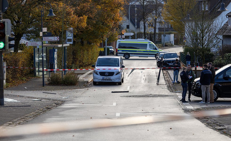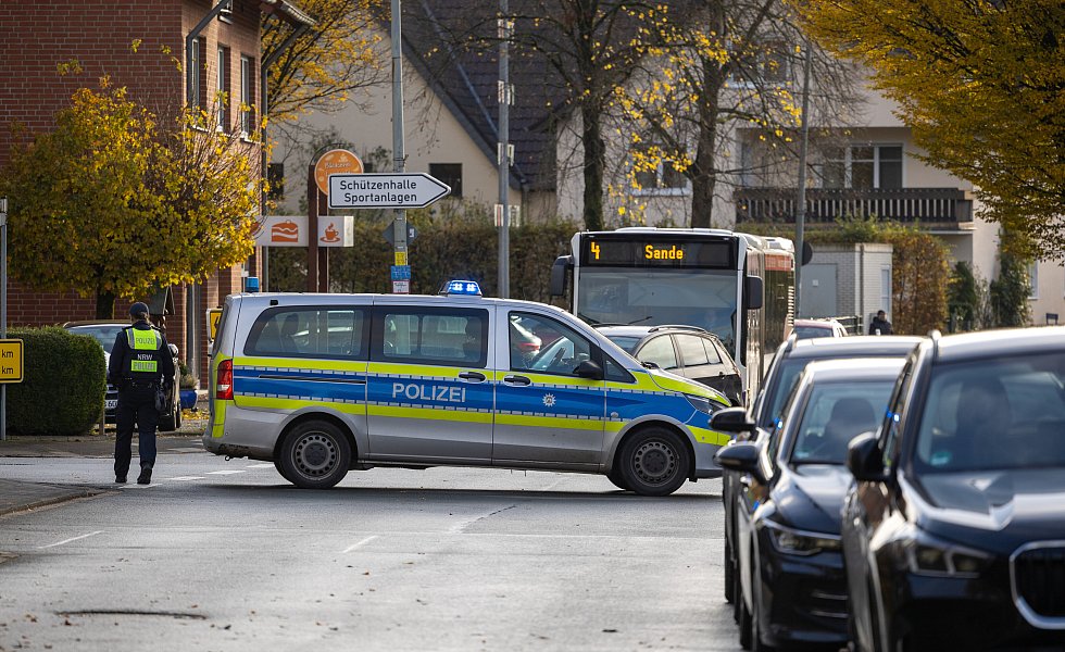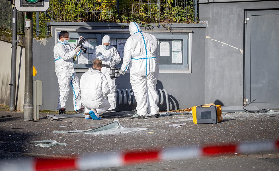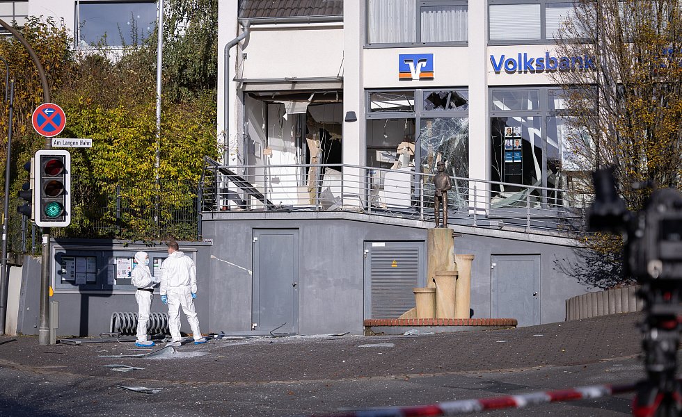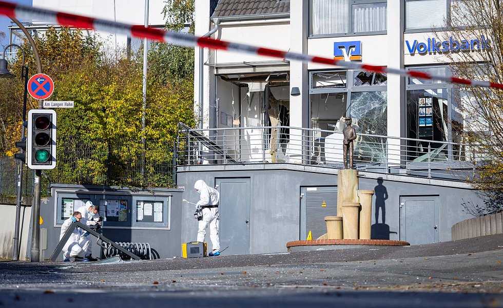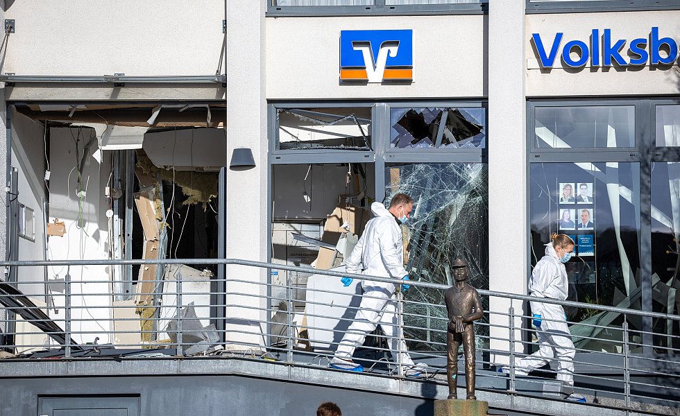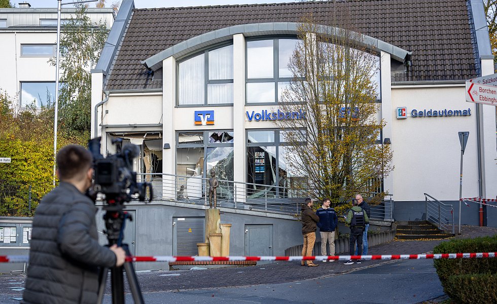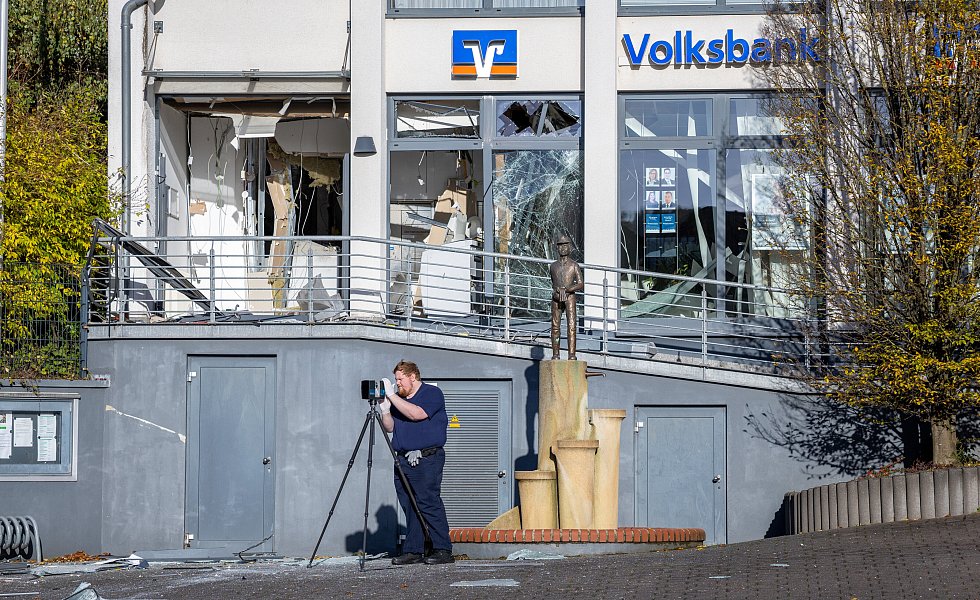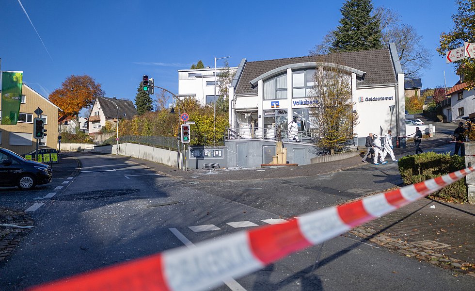 Wegen der Geldautomatensprengung in der Volksbank-Filiale ist Ortsdurchfahrt des Paderborner Stadtteils Dahl stundenlang gesperrt.