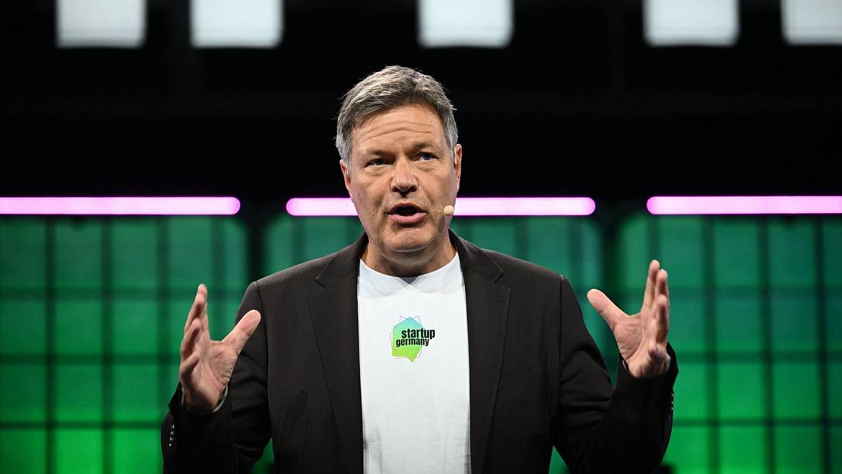 Wirtschaftsminister Habeck hält auf dem «Web Summit» eine Rede. | © Sebastian Christoph Gollnow/dpa