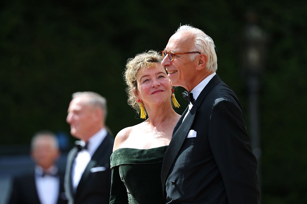 Erst ein Regenschauer mit Donnergrollen, dann doch noch Sonnenschein für den großen Auftritt der Politik und anderer Prominenz zum Start der Bayreuther Festspiele: Bundeskanzler Friedrich Merz (CDU) kam mit seiner Frau Charlotte, die ein leuchtend blaues Kleid trug, zum Grünen Hügel. 15 Minuten vor Beginn der Neuproduktion der Richard-Wagner-Oper «Die Meistersinger von Nürnberg» schritten sie über den roten Teppich, was sich als perfektes Timing erwies: Bläser aus dem Festspielorchester traten auf den Balkon über dem Königsportal und kündigten mit einigen Takten aus den «Meistersingern» den nahenden Start der Aufführung an.