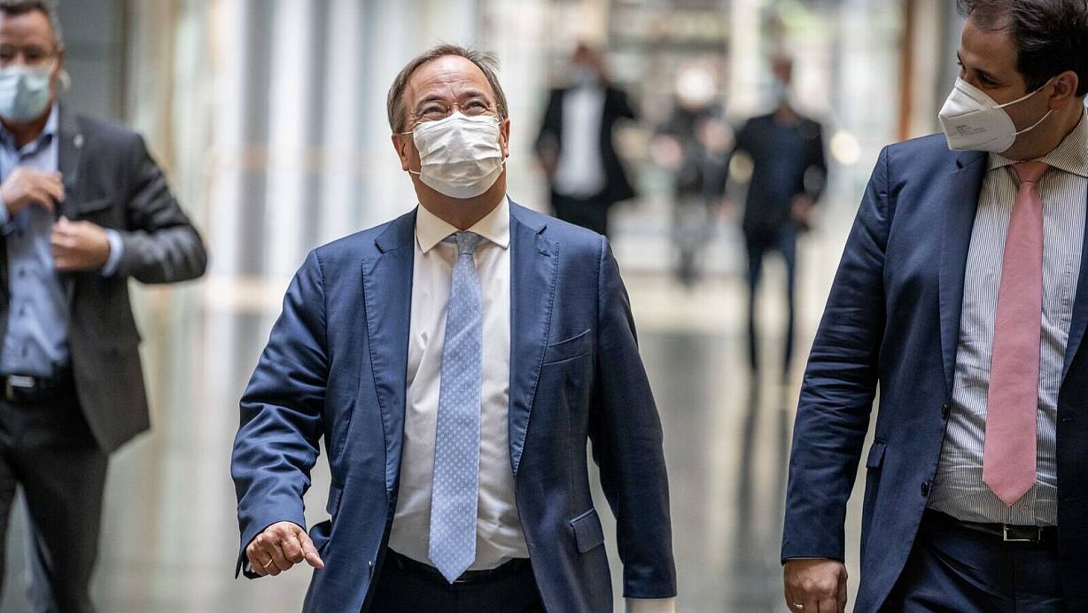 Armin Laschet (M), Unions-Kanzlerkandidat mit Nathanael Liminski (r), Chef der Staatskanzlei NRW. | © picture alliance/dpa