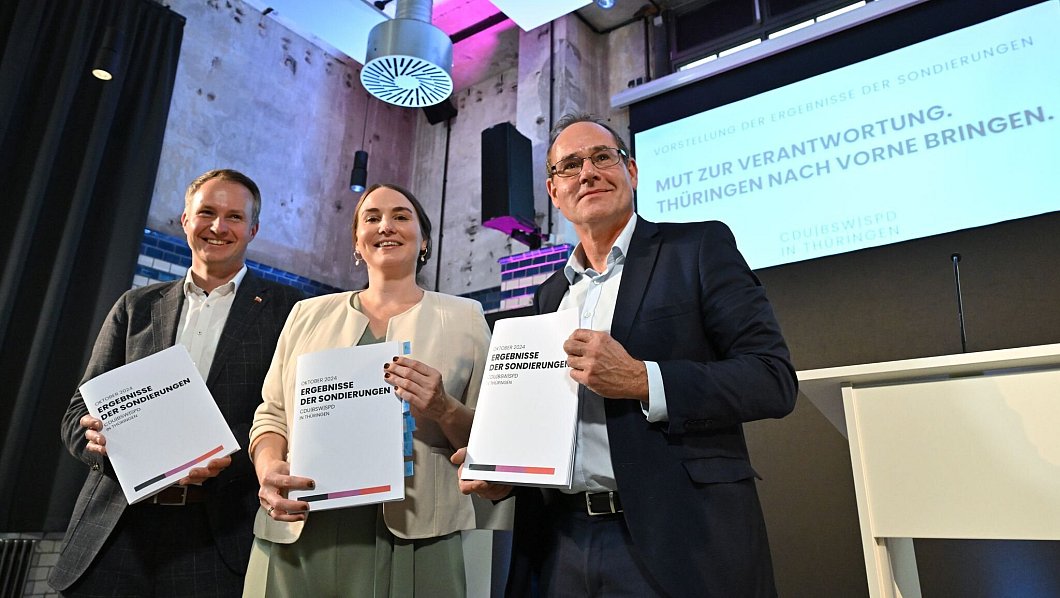 Maier äußerte sich zuversichtlich, dass auch zur Friedenspolitik ein Kompromiss gefunden wird. Thüringens BSW hatte das zur Bedingung für den Start von Verhandlungen über eine Regierungskoalition gemacht. Gespräche dazu soll es voraussichtlich in der kommenden Woche geben, hieß es bei SPD und CDU.