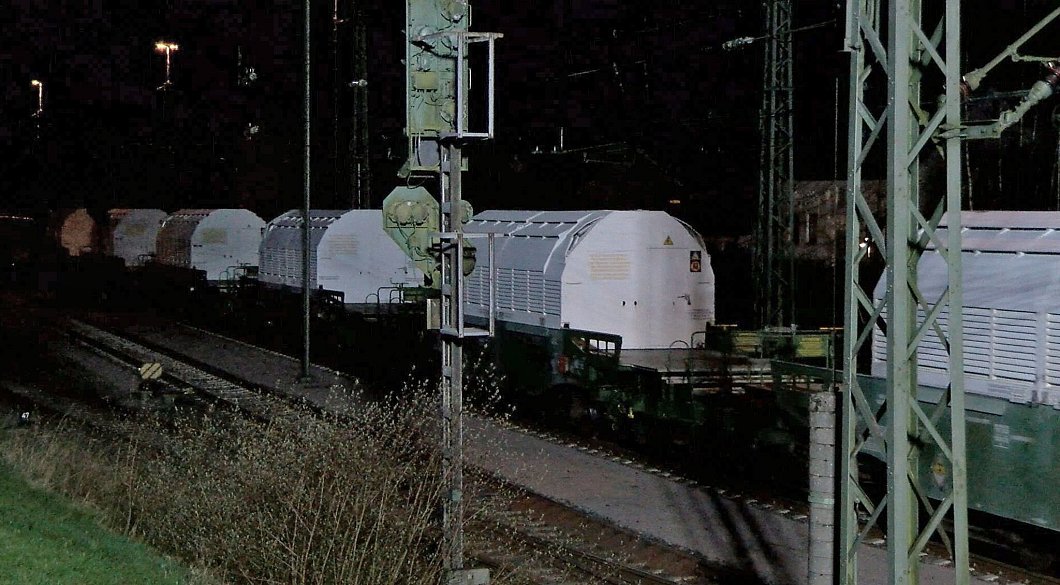 Anders als in der Zeit der großen Anti-Atom-Bewegung ist ein Zug mit hoch radioaktiven Atomabfällen ohne Zwischenfälle quer durch Deutschland bis ans Ziel gerollt. Die sieben aus Großbritannien kommenden Castor-Behälter erreichten am Abend das Zwischenlager in Niederaichbach. Um 19.10 Uhr passierte der Zug das Tor. Damit geht ein weiteres Kapitel deutscher Atomkraftgeschichte seinem Ende entgegen. Denn: Es war der vorletzte Castor-Transport dieser Art.