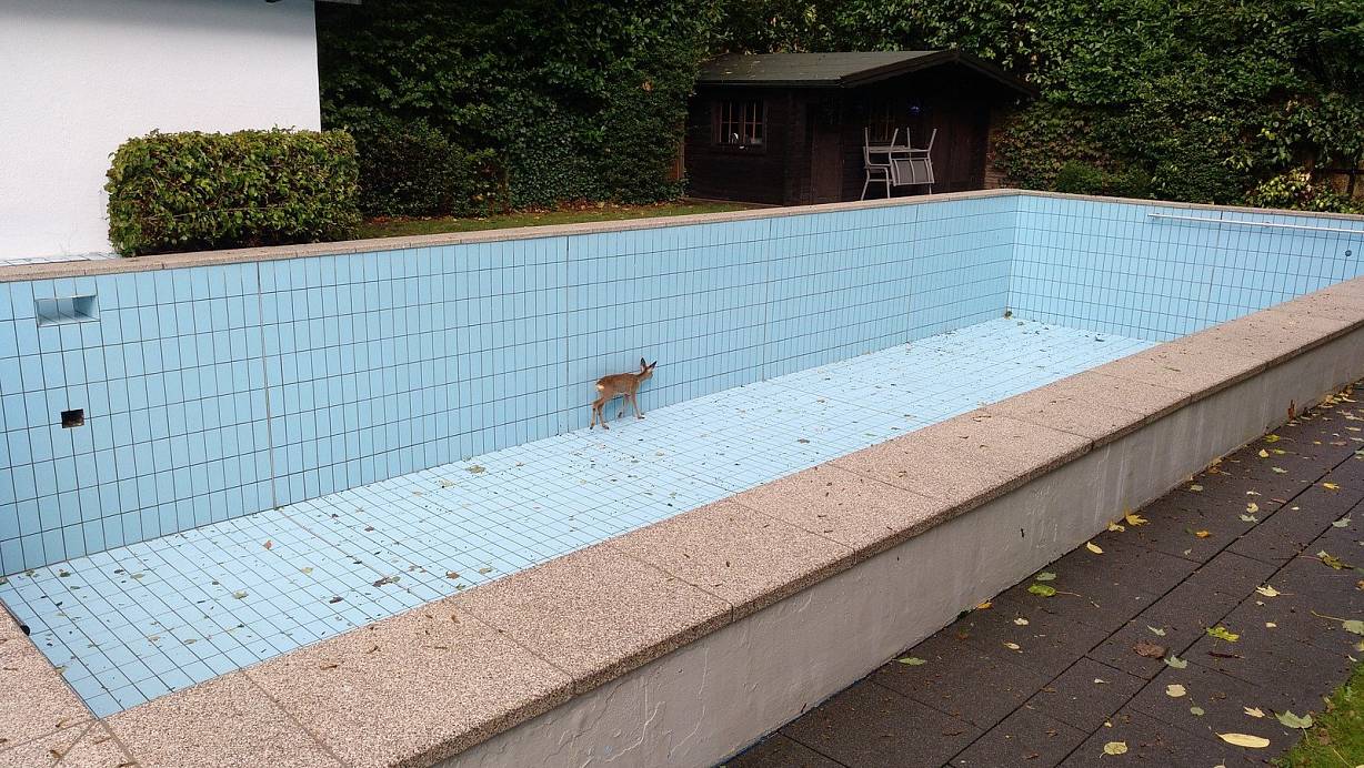 Das Tier war in den Pool gestürzt und hatte alleine keine Chance, sich aus dem tiefen Becken zu befreien.