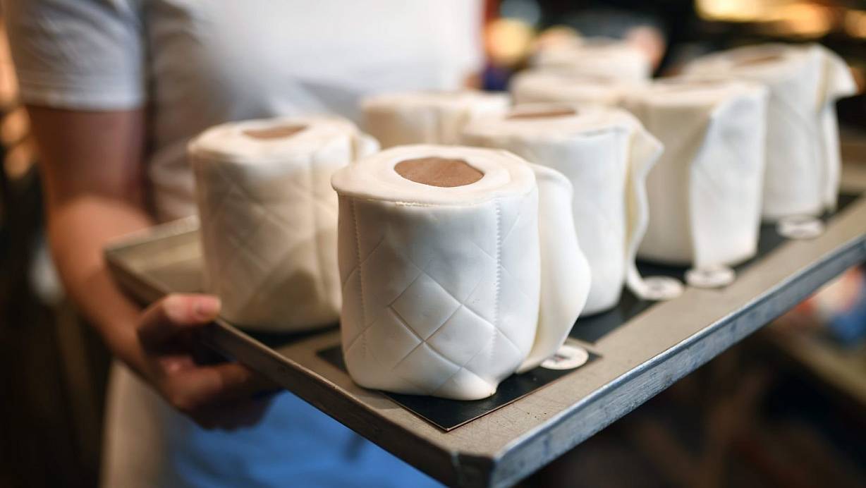 Ein Dortmunder Bäcker heitert mit Klopapier-Kuchen seine Kunden auf. | © AFP