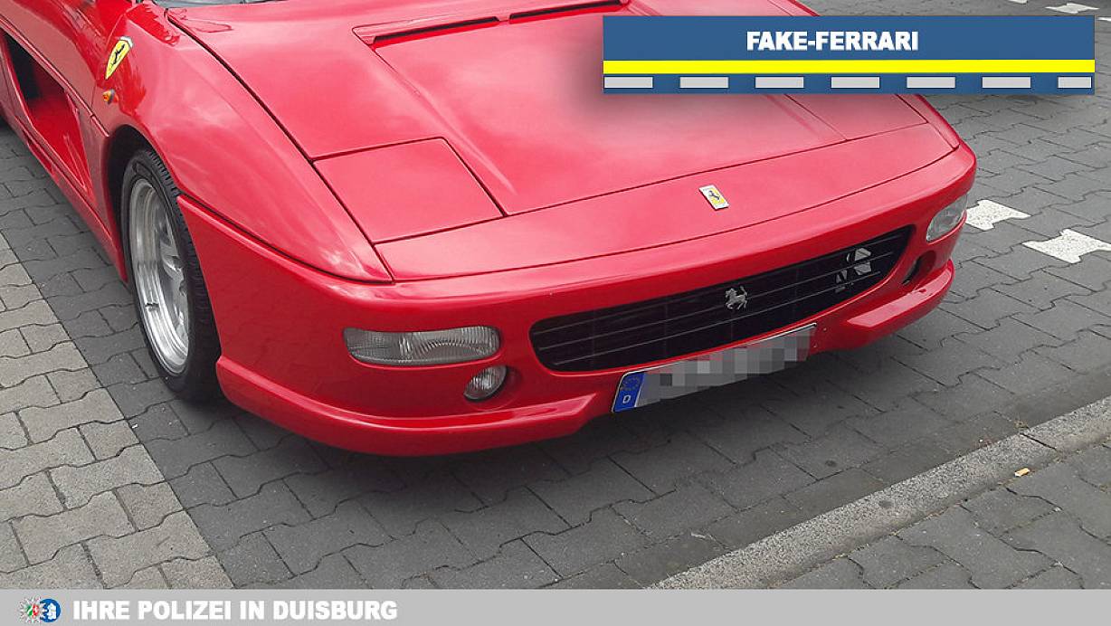 Das Auto trägt das markenrechtlich geschützte Ferrari-Logo auf der Kühlerhaube, über den Rädern und reichlich verteilt auch im Innenraum, wie ein Polizeisprecher am Mittwoch sagte. Damit verstoße er gegen Markenrechte, die besonders von Edel-Herstellern sorgfältig geschützt würden.