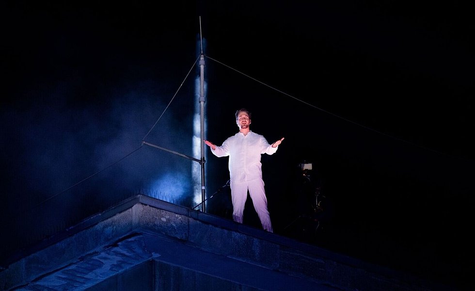 Parallel zur Jesus-Erzählung wird in Essen immer wieder zu einem großen Lichtkreuz geschaltet, das durch die Stadt getragen wird. Reporterin Annett Möller interviewt dort etwa eine Ukrainerin, die sich Erlösung für ihr Volk wünscht, was ebenfalls Applaus aufbranden lässt. Eine andere Frau erzählt von einer Art Wunderheilung ihres Mannes, nachdem sie gebetet hatte.