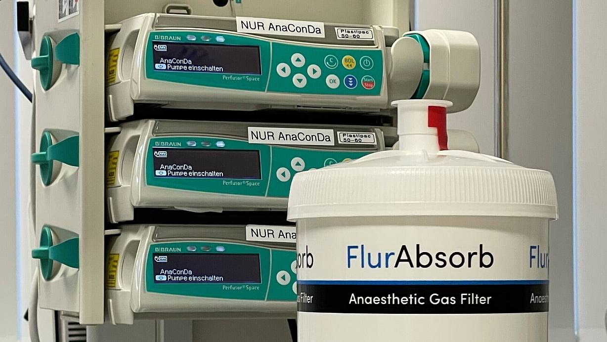 Ein Filter, der verwendetes Narkosegas auffangen kann, wird im Johannes-Wesling-Klinikum getestet. | © Prof. Dr. Jochen Hinkelbein