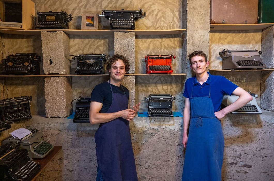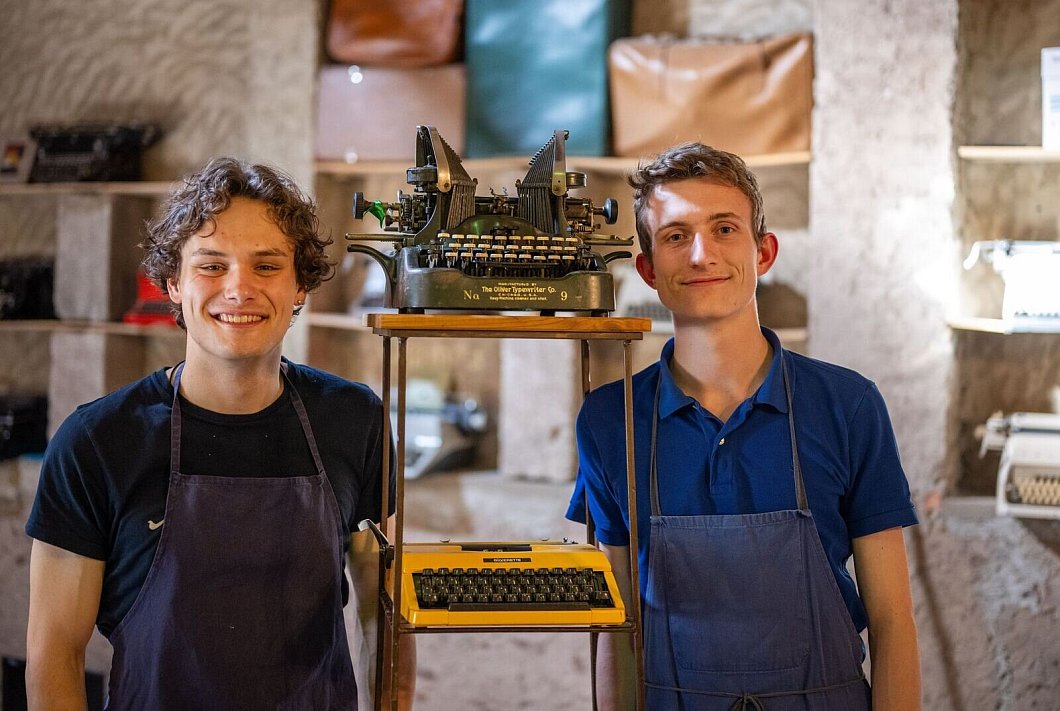 Die ersten Erfahrungen mit Schreibmaschinen hatte das Duo als Jugendliche bei der Großmutter und der Großtante gemacht. «Es hat uns fasziniert.» In der Schule haben sie dann in der Schülervertretung Protokolle immer auf der Schreibmaschine getippt. «Vorteil: Sie waren immer direkt verfügbar», sagt Kramp. Nebenbei fingen sie an, alte Schreibgeräte zu sammeln und zu reparieren. Und vor fünf Jahren dann haben sie eine Werkstatt und ein Geschäft auf einem umgebauten alten Heuboden geöffnet.