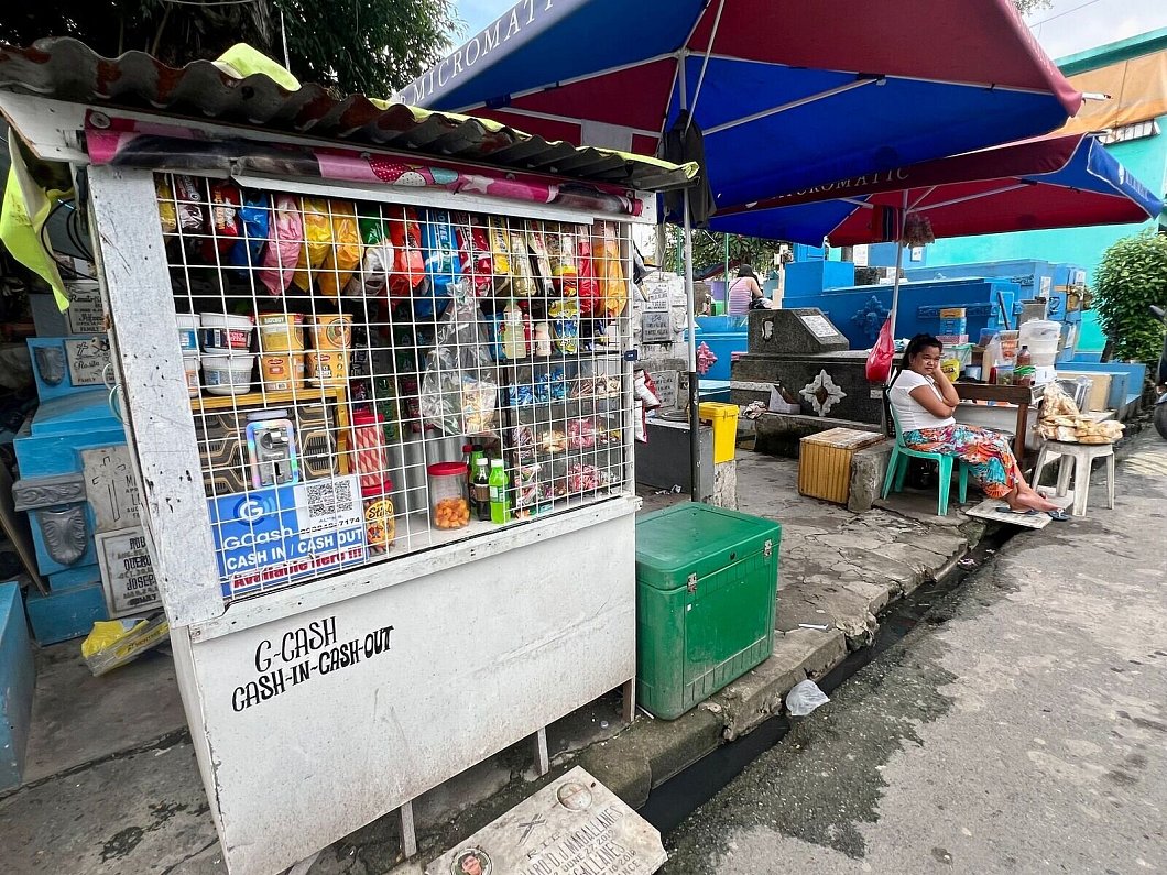 Auch gibt es kleine Läden, Stände mit gekochten Mahlzeiten und sogar münzbetriebene Prepaid-WLAN-Dienste. Zwölf Minuten Netzzugang kosten einen Philippinischen Peso (0,016 Euro).