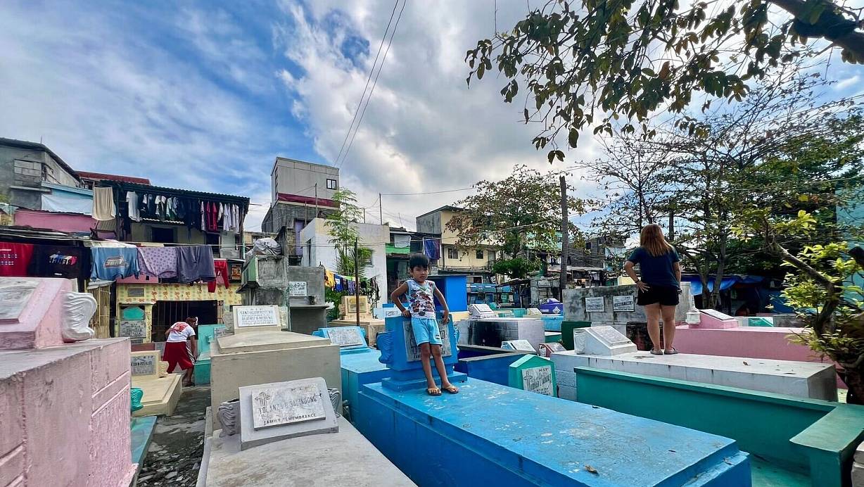 Marilyn Regala steht vor einer alten Waschmaschine und räumt T-Shirts und Handtücher ein. An sich nichts Ungewöhnliches, wären da nicht die vielen pastellfarbenen Gräber. Denn diese «Waschküche» steht auf einem Friedhof. Beim Blick nach oben auf das Wellblechdach fällt ein löchriger schwarzer Plastiksack ins Auge, aus dem Menschenknochen ragen. Der Manila North Cemetery ist kein Ort für schwache Nerven: Hier - auf einem der größten und ältesten Friedhöfe der philippinischen Hauptstadt - leben rund 6.000 Menschen zwischen einer Million Toten.
