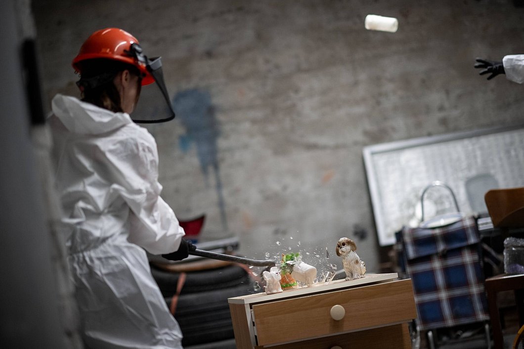 Diese eher theoretischen Betrachtungen sind in Dirk Jareschs «Randalezentrale» - so heißt sein Betrieb (Claim: «Mach kaputt, was kaputt macht») - recht weit weg. Es geht um sehr praktische Fragen, etwa die nach dem richtigen Werkzeug. An der Wand hängen Baseballschläger, Eisenstangen, Vorschlaghammer. Mit Golfschlägern hat man schlechte Erfahrungen gemacht: «Die halten einfach nicht.»