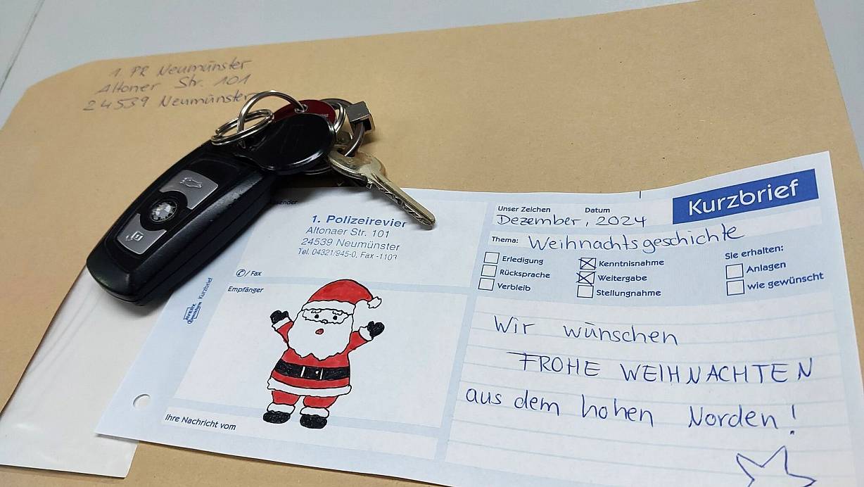 Die Polizei in Neumünster hat der Frau ihren Schlüsselbund nun zugeschickt, mit Weihnachtsgrüßen aus dem hohen Norden. «Zu Weihnachten war dies vermutlich ein letzter Weihnachtsgruß von ihrem verstorbenen Hund», hieß es dazu in der Polizeimitteilung. «Denn ohne die Marke hätte die Frau ihren Schlüsselbund wohl nicht wiederbekommen.»
