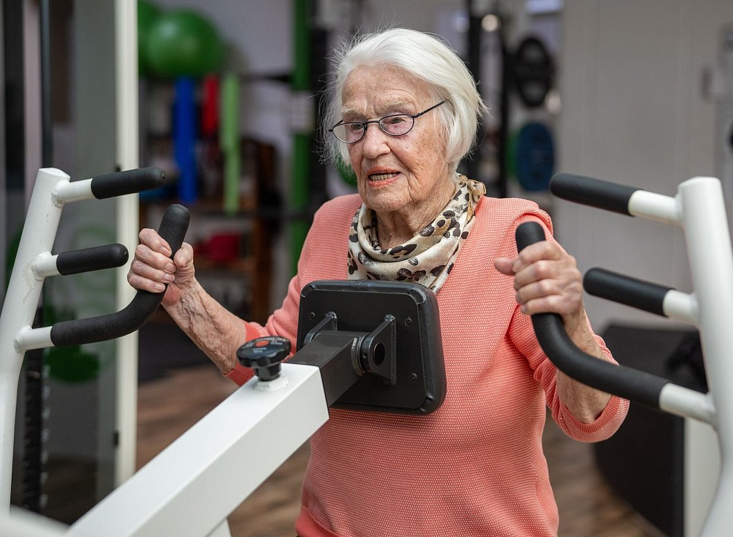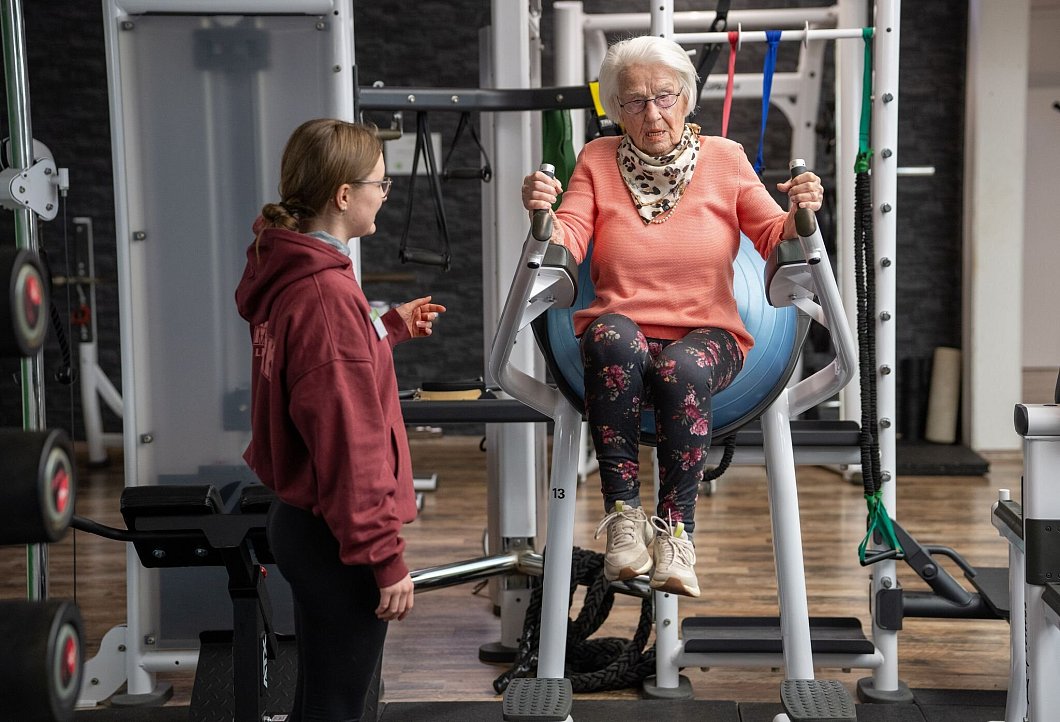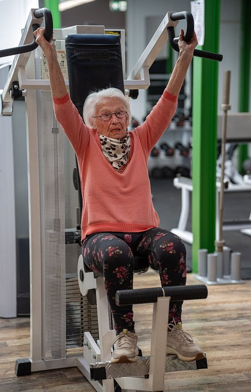 Rita Lord schlüpft in ihre Turnschuhe und los geht's. Mit ihren 100 Jahren trainiert sie immer noch regelmäßig im Fitness-Studio: Erst geht es an den Bauchtrainer, danach kommen Geräte für Rücken und Schulter dran. Pause machen will sie nicht. «Und was kommt als Nächstes?», fragt sie ihren Trainer lachend.