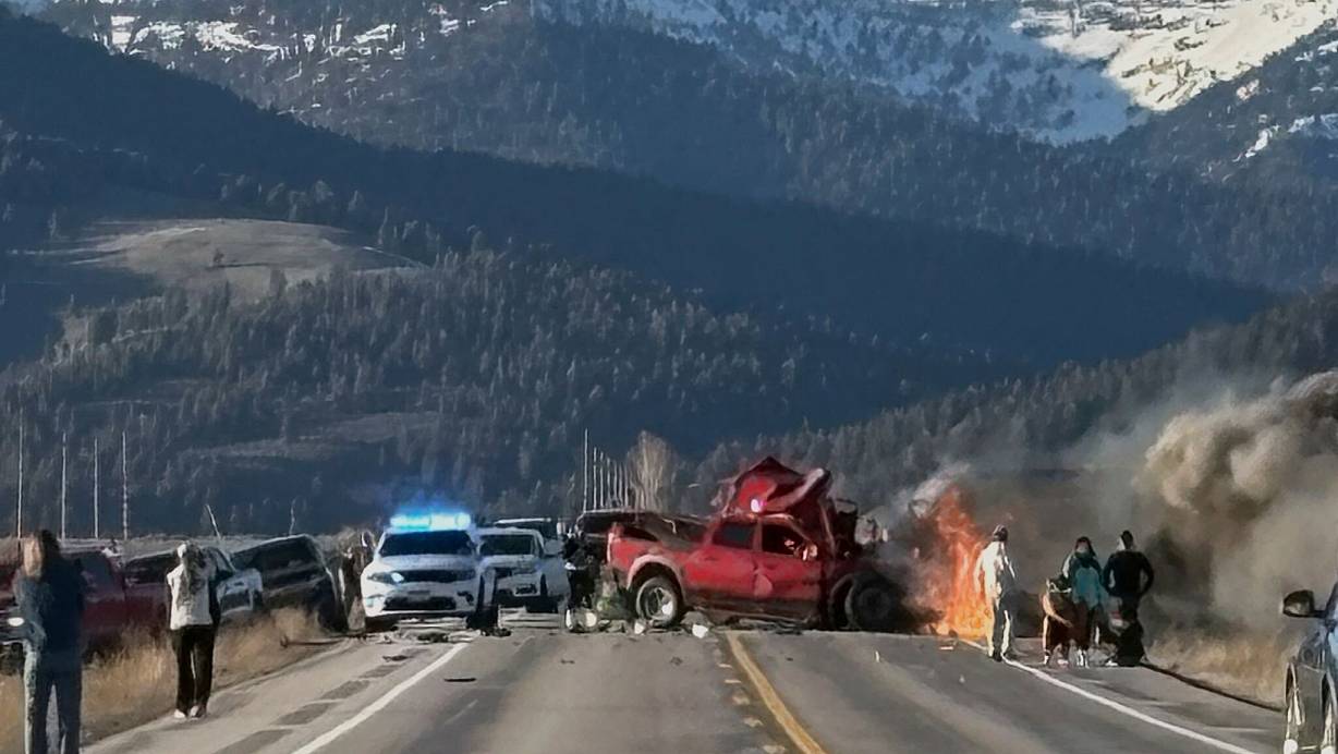 An Bord des Touristen-Vans, der auf dem Highway Richtung Yellowstone-Park unterwegs war, befanden sich nach Angaben der Polizei in Idaho neben dem Fahrer 14 Menschen. Drei Verletzte hätten per Hubschrauber in Krankenhäuser geflogen werden müssen. Die übrigen Überlebenden hätten keine lebensgefährlichen Verletzungen erlitten und seien auf dem Landweg zu Hospitälern in der Gegend gebracht worden. Der Sender Fox News zeigte Bilder der brennenden Autos auf der Straße.