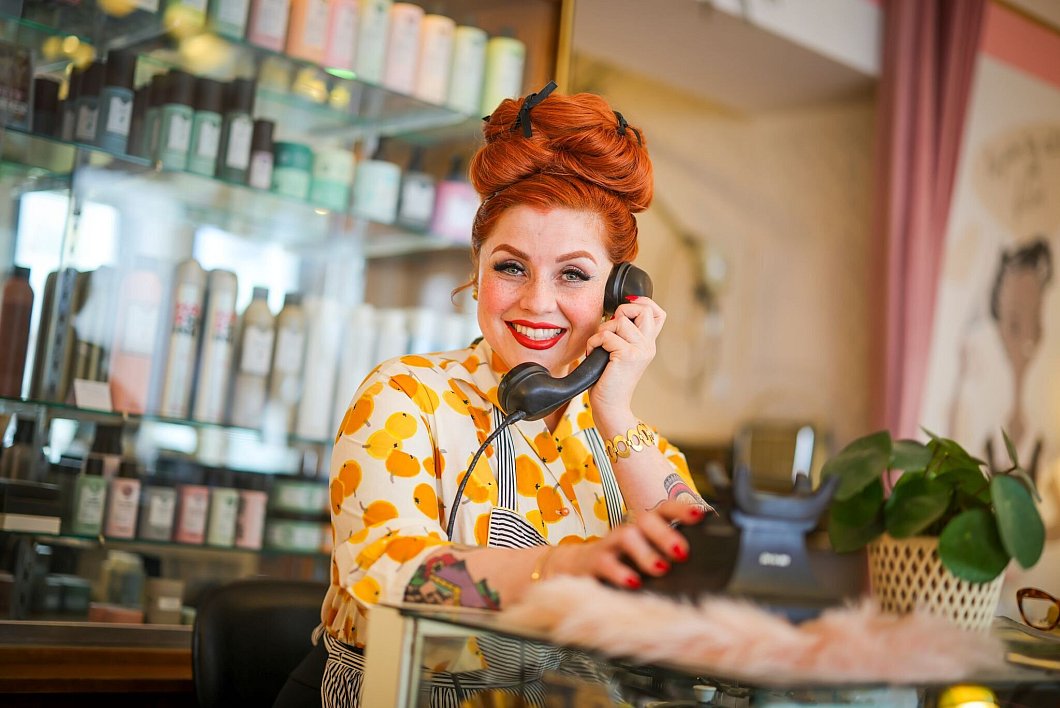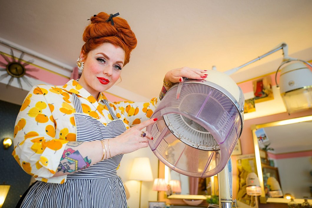 In Kittys Friseursalon ist von der Trockenhaube bis zum Kaffeetässchen alles aus den 60ern. Vor allem die Frisuren. Es wird aufwendig toupiert, während alte Schlager aus dem rosa Transistorradio dudeln.