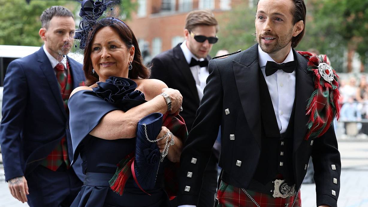 Auch Ex-Bandkollegin Emma Bunton (49) war bei ihrer Ankunft im rosafarbenen Kleid mit passender Kopfbedeckung zu sehen. Sie kam in Begleitung ihres Partners Jade Jones und ihres Sohns Beau.