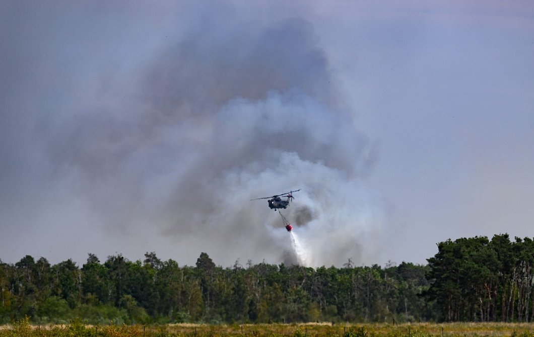 Laut Landratsamt waren am Sonntag rund 600 Helfer von Feuerwehr, Technischem Hilfswerk, der Bundeswehr, der Polizei und anderen Organisationen im Brandgebiet eingesetzt. Dazu kamen unbemannte Löschroboter aus Brandenburg. Aus Sachsen-Anhalt traf ein Löschzug speziell zur Vegetationsbrandbekämpfung ein.
