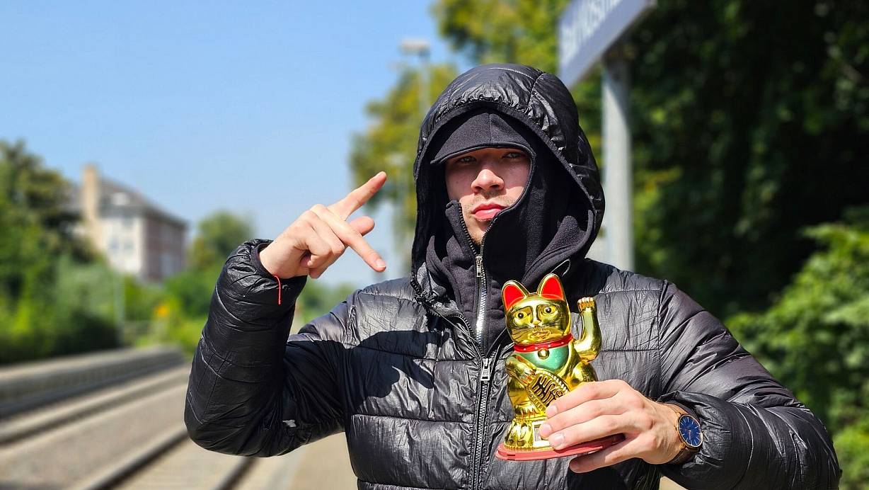 Beim Dreh in Greiz freut sich ein Junge, dass er die goldene Winkekatze halten darf, die in jedem von Busiks Tuff-Clips auftaucht. Sie stehe symbolisch für Glück und Reichtum, «für mich aber eben auch für den Osten – für den Schatz, den viele nicht mehr sehen wollen», sagt Busik, dessen Schwester Anfang des Jahres zur «Miss Germany» gewählt wurde.