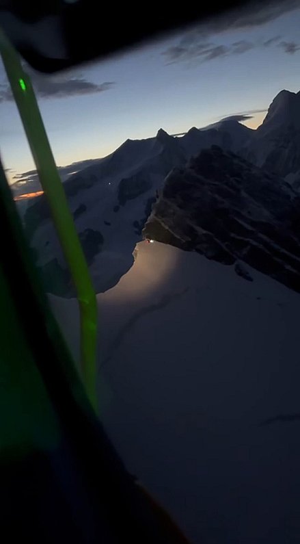 Am frühen Morgen gegen 5.30 Uhr kam dann doch ein Hubschrauber von der italienischen Seite zu ihnen durch. Die beiden hatten Zuflucht an einer verhältnismäßig windgeschützten Stelle gesucht, wo sie zwischen Schnee und Eis auch die Nacht verbrachten. Mit einer Leuchte konnten sie dann auf sich aufmerksam machen. Zudem bestand übers Handy Verbindung.