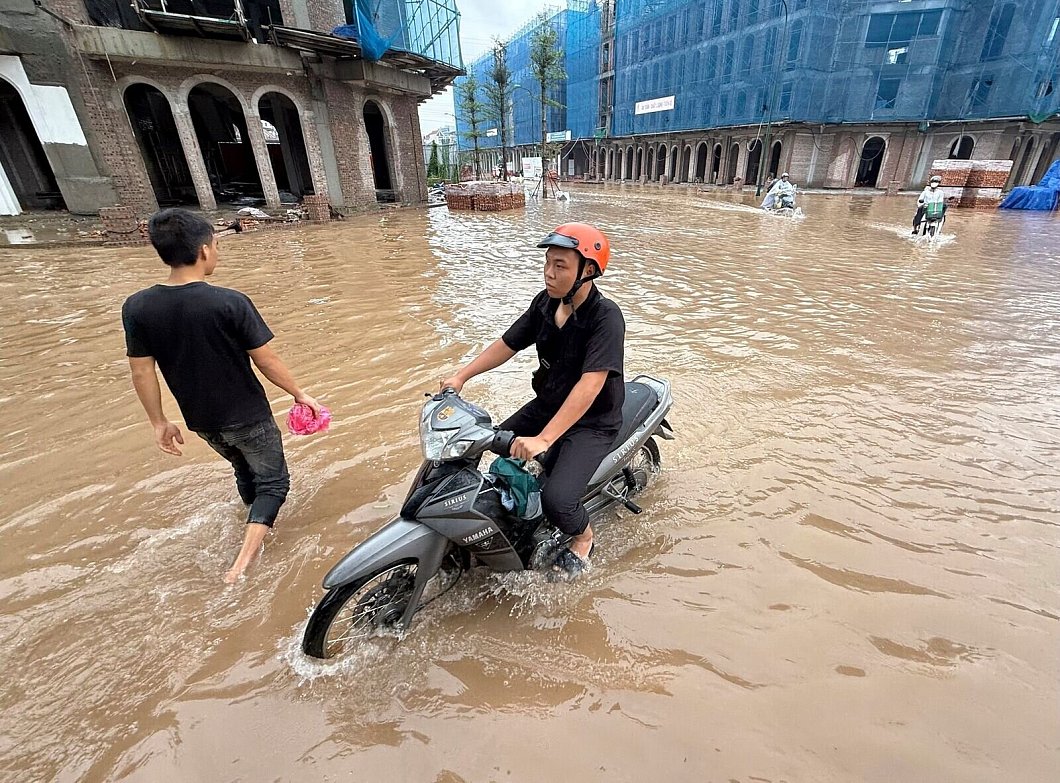 Heftiger Regen überflutete weite Landesteile, darunter auch die Hauptstadt Hanoi. Zahlreiche Straßen in der Metropole standen unter Wasser, Autos und Motorräder versanken in den Fluten. Anwohner berichteten von überschwemmten Häusern, in denen kleine Fische durch die Räume schwammen.