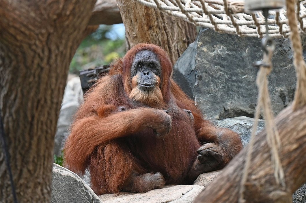 Leuchtend rotes Fell, gelassene Ruhe jenseits des Trubels und viel Liebe für ihren Ziehsohn Berani - daran können Besucherinnen und Besucher im Hamburger Tierpark Hagenbeck die wohl älteste Organ-Utan-Dame der Welt erkennen. Bella ist bereits 64 Jahre alt und für ihr Alter noch erstaunlich rüstig und fit, wie Chandra Kummerfeldt sagt. Die Tierpflegerin ist stellvertretende Leiterin des Affenreviers bei Hagenbeck. «Das ist richtig faszinierend. Ihr geht es gut. Es ist total toll, mit ihr zu arbeiten. Obwohl sie alt ist, kann sie noch super klettern. Und sie kennt ihre Limits.»