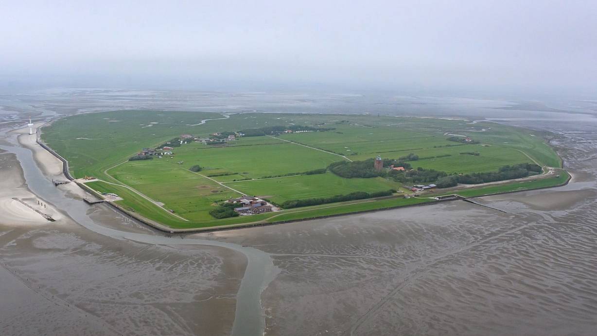 Als «Hamburger Juwel» bezeichnete Umweltsenatorin Katharina Fegebank (Grüne) die Nordseeinsel. Der etwa 120 Hektar große Inselkern ist von einem mehrere Meter hohen Deich umgeben.