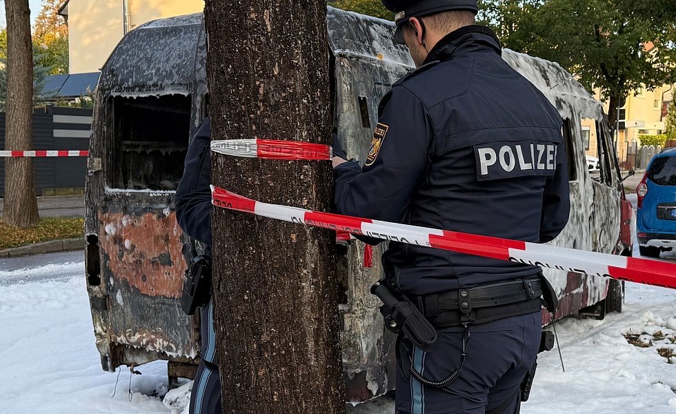 Zuvor hatten ein Feuer und Explosionsgeräusche einen Großeinsatz ausgelöst. In einem Münchner Wohngebiet wurde ein völlig ausgebrannter Transporter gefunden - und ein Verletzter an einem nahen See, der kurz darauf verstarb.