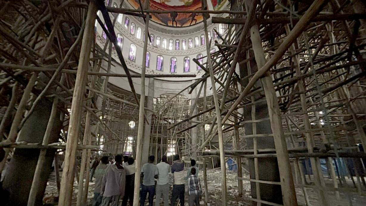 Die etwa 50 Meter hohen Wände der Kirche seien von einem Baugerüst umgeben gewesen, das nicht den städtebaulichen Richtlinien entsprochen habe, berichtete der staatliche Fernsehsender EBC. Einige Gläubige seien auf das Gerüst geklettert, um besser sehen zu können. Dabei sei das Gerüst eingestürzt und habe Dutzende Menschen unter sich begraben.