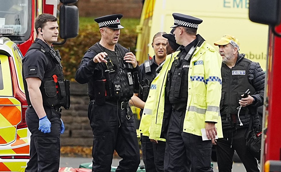 Wie die Polizei mitteilte, war ein Auto am Morgen in eine Gruppe von Menschen vor der Synagoge im Norden Manchesters gelenkt worden, ein Mann wurde zudem durch ein Messer verletzt. Auf Bildern vom Ort des Geschehens waren zahlreiche Rettungswagen und schwer bewaffnete Polizisten zu sehen.