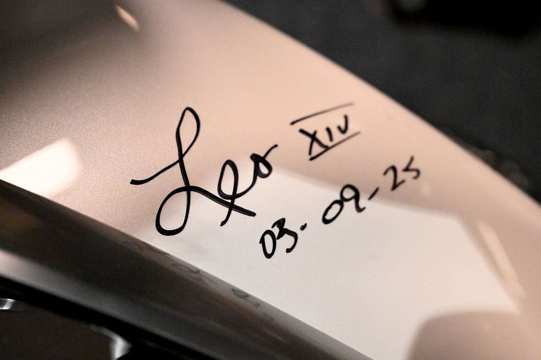 Ein von Papst Leo XIV. signiertes Motorrad ist für 130.000 Euro plus Gebühren und Steuern versteigert worden. Der Pontifex hatte das Gefährt den Angaben des Auktionshauses RM Sotheby's zufolge im September im Vatikan mit seiner Unterschrift versehen. Fotos auf der Homepage des Auktionshauses zeigen ihn auf der Maschine sitzend und mit einem passenden Helm in der Hand.