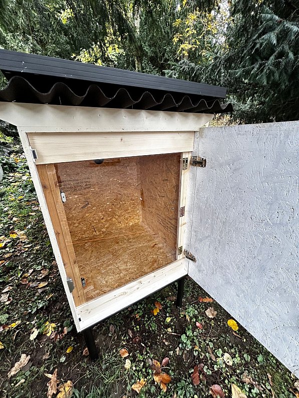 Die große Holzbox mit Ventilator und Kamera steht an einem Waldrand in Hilterfingen rund 30 Kilometer südöstlich von Bern. Wenn jemand ein Tier hineintut und die Box verschließt, werden Tierschützer alarmiert, die es innerhalb von weniger als einer Stunde abholen. Der Name «Tierklappe» ist etwas irreführend und erinnert an Babyklappen bei Krankenhäusern, in die Mütter in Not anonym ihre Neugeborenen legen können.