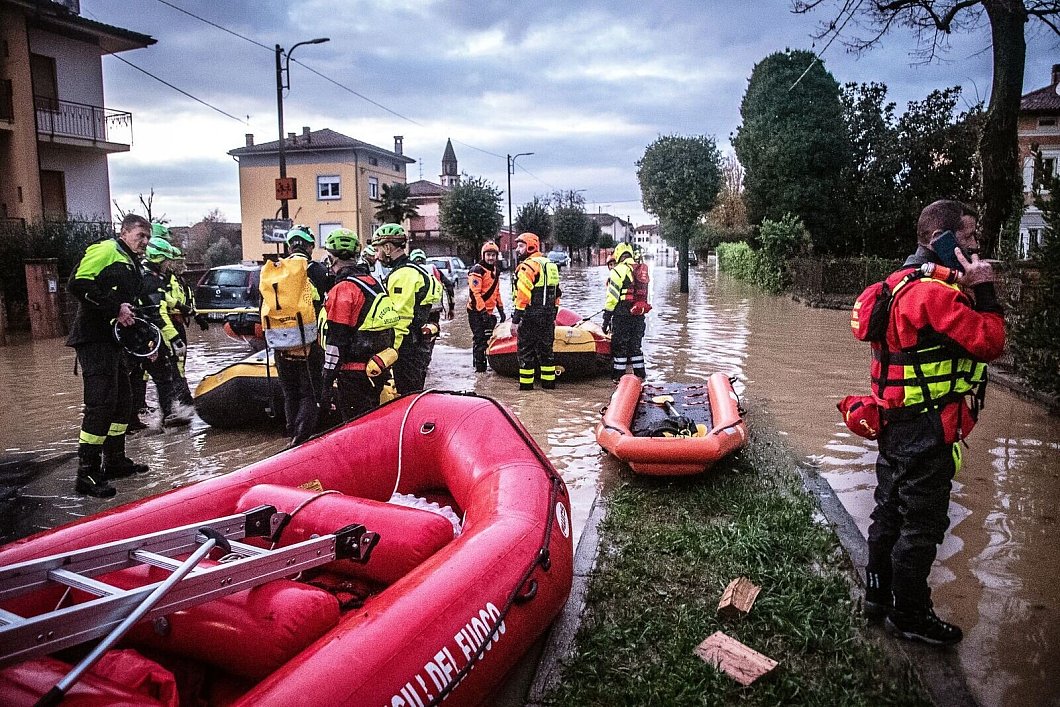 In der Region hatte es in den vergangenen Tagen heftig geregnet. Zahlreiche Straßen sind überschwemmt. Viele Keller stehen unter Wasser. | © Vigili del Fuoco/dpa