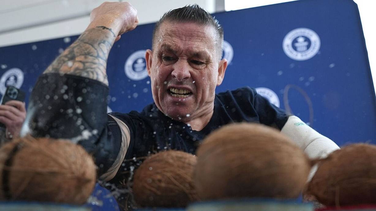 Gaude knackte seinen eigenen Rekord von 83 Kokosnüssen. | © Marcus Brandt/dpa