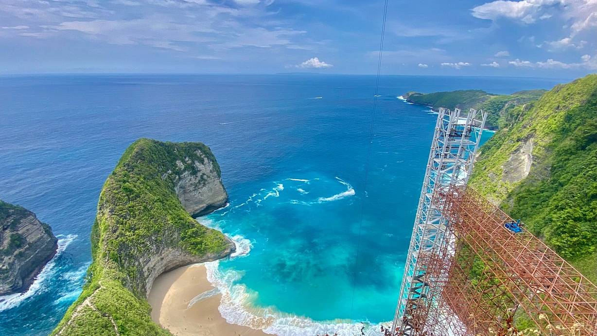 Das 180 Meter hohe Bauwerk sollte Touristen künftig in gläsernen Kabinen zum berühmten «T-Rex-Felsen» auf der kleinen Nachbarinsel Nusa Penida hinabfahren lassen. Die Klippen am Kelingking Beach formen - von oben betrachtet - einen riesigen Dinosaurierkopf mit geöffnetem Maul. Auf Instagram und in anderen sozialen Netzwerken kursieren Hunderttausende Bilder des ikonischen Motivs unter Hashtags wie #kelingkingbeach und #trexcliff.